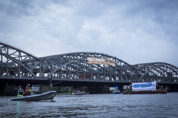 Mehr als 30 Aktivist*innen von Sea-Watch, Jugend Rettet und Never mind the papers, protestieren im Vorfeld des Gipfels mit einer spektakulären Kletteraktion an den Elbbrücken, für eine Wende in der Migrationspolitik der G20. „BUILD BRIDGES NOT WALLS“ steht auf einem gut 140m2 großen Banner, welches 7 Kletter*innen an der Freihafen Elbbrücke entrollt haben. „Über 14.000…
