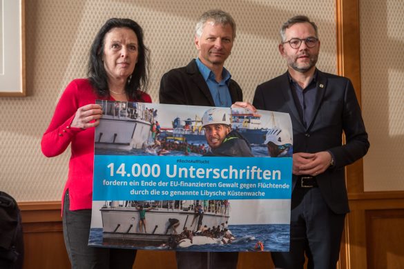14.000 fordern ein Ende der Finanzierung für die sogenannte Libysche Küstenwache Sea-Watch hat am 26. Februar 2017 in Anwesenheit von Eva-Maria Schreiber (MdB, Die Linke) die Petition „EU-finanzierte Gewalt gegen Flüchtende durch Libysche Küstenwache beenden!“ an den Staatsminister im Auswärtigen Amt, Michael Roth, übergeben. „Wir sind sehr stolz, dass so viele unser Anliegen unterstützen und…
