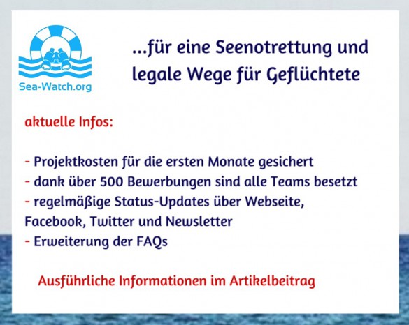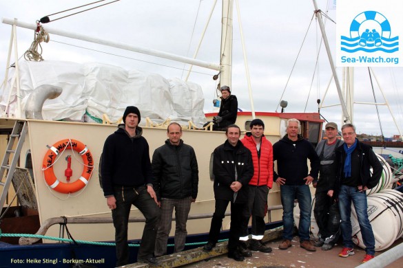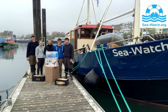 Die “Sea-Watch” liegt seit einigen Tagen in Cherbourg in Frankreich im Hafen. Starker Wind und Wellengang machen eine Weiterfahrt derzeit noch nicht möglich.