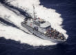 Um 6 Uhr morgens erreichte uns an diesem Tag der erste Rettungsnotruf. Das Rettungskoordinationszentrum, MRCC, in Rom gab immer wieder die Position des verunglückten Bootes durch und forderte uns auf, uns dorthin zu bewegen. Kurz vor Erreichen der Position, bemerkten wir die LYCG. Außerdem ein Aufklärungsflugzeug und ein französisches Kriegsschiff. Als wir die ersten Menschen im Wasser sahen, warfen wir von unseren schnellen Beibooten Rettungswesten ins Wasser und zogen die ersten an Bord. Zu diesem Zeitpunkt befand sich das Schiff der LYCG noch nicht direkt an dem Schlauchboot, von dem die Menschen aus in das Wasser sprangen. Die nächsten Minuten waren wir damit beschäftigt, Menschen aus dem Wasser zu ziehen. In dieser Situation begann die LYCG sich dem Schlauchboot zu nähern. Wann genau dies passiert ist, kann ich nicht sagen. Was ich aber sagen kann ist, dass die LYCG nicht ihre Schnellboote zu Wasser ließ, um Menschen zu bergen und in keiner Weise den Menschen half, die sich im Wasser in der Nähe ihres Schiffes befanden.