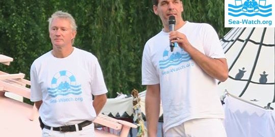 (links im Bild: Kapitän Ingo Werth, rechts: Sea-Watch Initiator Harald Höppner, Bildquelle: Bettina Veyder-Malberg)