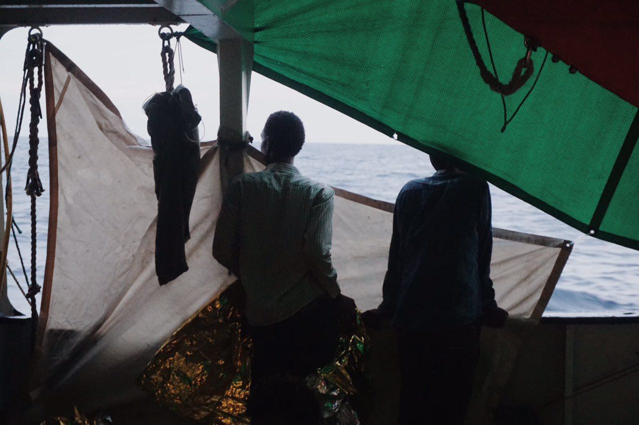 Während EU-Bürger*innen heute Brötchen oder Croissants mit einem hartgekochten Ei frühstücken, mit ihren Hunden spazieren gehen oder ihre Familie besuchen, haben an Bord der Sea-Watch 2 zum ersten Mal Flüchtende übernachtet. Aus logistischen Gründen werden sie erst heute an ein größeres Schiff übergeben.