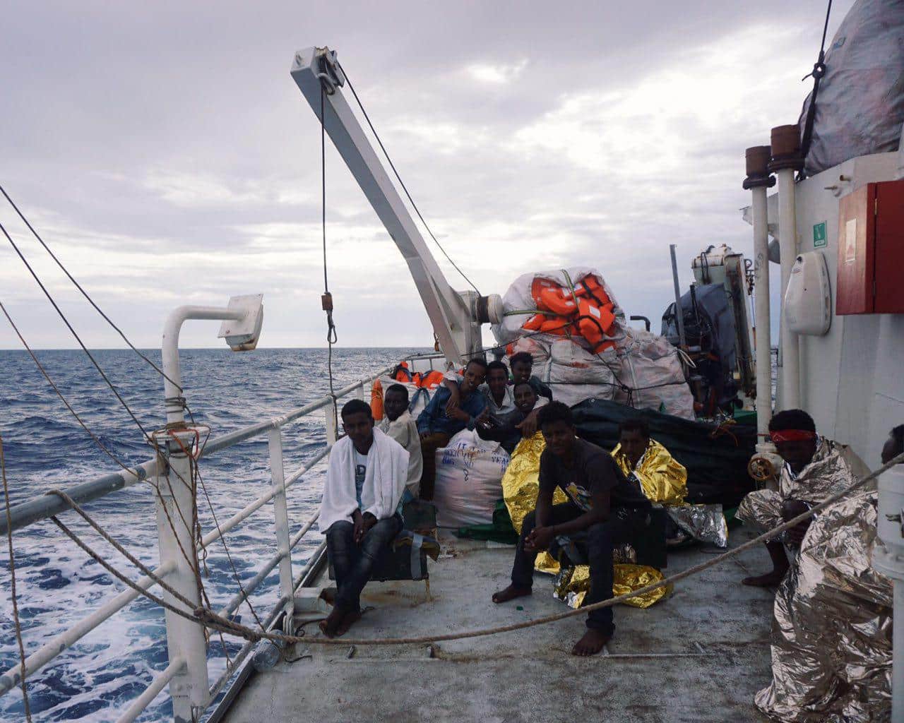 Die 51 Männer lagen dicht gedrängt und in Wärmedecken gewickelt auf dem Achterdeck und überstanden so eine raue, stürmische Nacht.