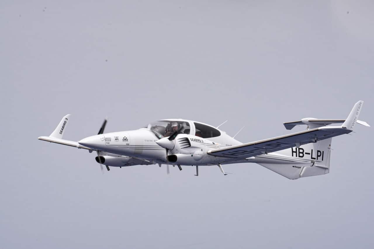 Das zweimotorige Propellerflugzeug ist leicht und kosteneffizient und hat eine besonders lange Flugdauer-Kapazität. Ideal, um Seenotfälle zu melden und Menschenrechtsverstöße festzuhalten.