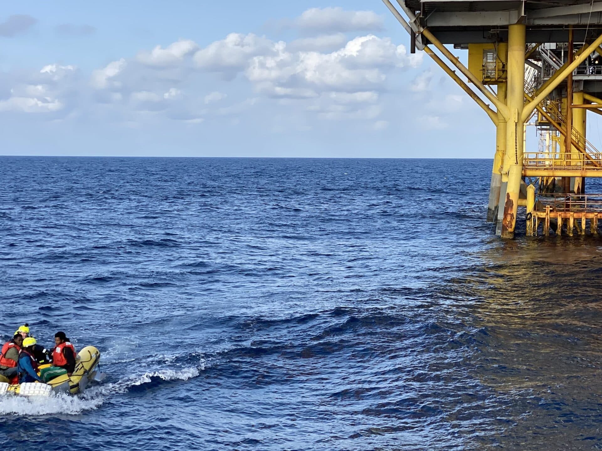 Rettungsschiff Aurora rettet Menschen von Gasplattform