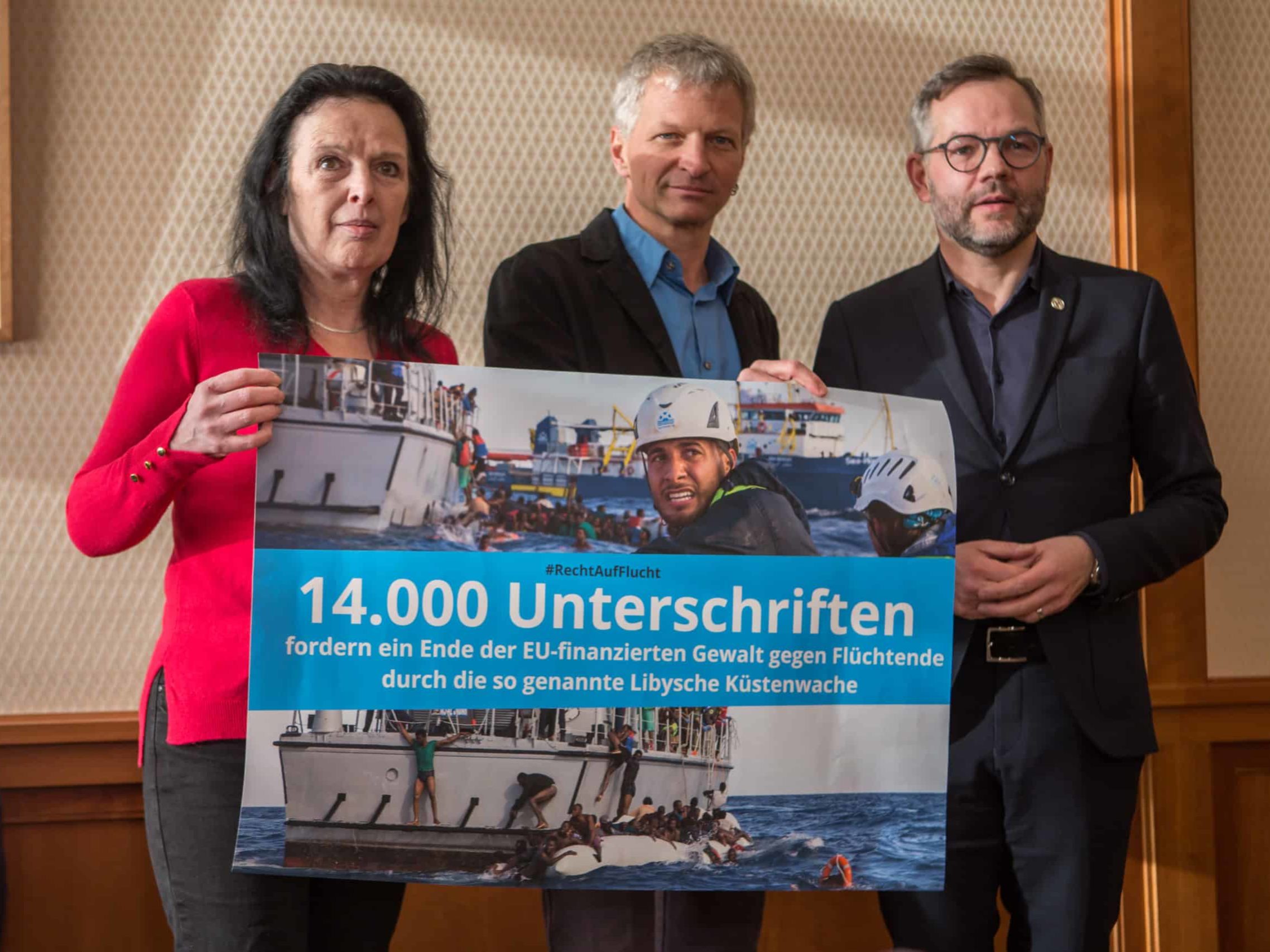 14.000 fordern ein Ende der Finanzierung für die sogenannte Libysche Küstenwache Sea-Watch hat am 26. Februar 2017 in Anwesenheit von Eva-Maria Schreiber (MdB, Die Linke) die Petition „EU-finanzierte Gewalt gegen Flüchtende durch Libysche Küstenwache beenden!“ an den Staatsminister im Auswärtigen Amt, Michael Roth, übergeben. „Wir sind sehr stolz, dass so viele unser Anliegen unterstützen und…
