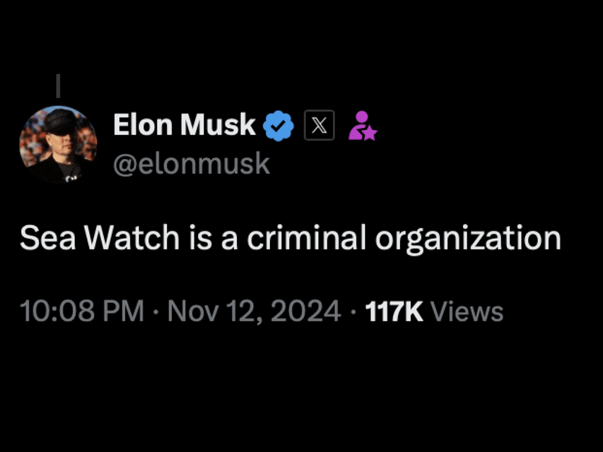 Nach seinem Angriff auf das italienische Justizsystem attackiert Elon Musk die zivile Seenotrettungsorganisation Sea-Watch auf seiner Plattform X und bezeichnet die Organisation als „kriminell“. Dies geschah am selben Tag, an dem Sea-Watch Strafanzeige gegen italienische Behörden erstattet, unter anderem wegen mehrfacher fahrlässiger Tötung. Bei einem Schiffbruch im September diesen Jahres waren 21 Menschen ums Leben…