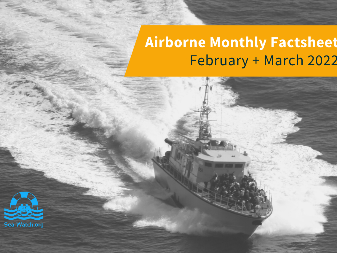 This factsheet outlines a summary of the distress cases witnessed in February and March 2022 by Sea-Watch’s Airborne Operations with the aircraft Seabird and Seabird 2.* In February and March 2022 we conducted 12 operations, with a total flight time of 72 hours and 48 minutes. We spotted 2 boats, carrying around 158 persons in distress. Download…